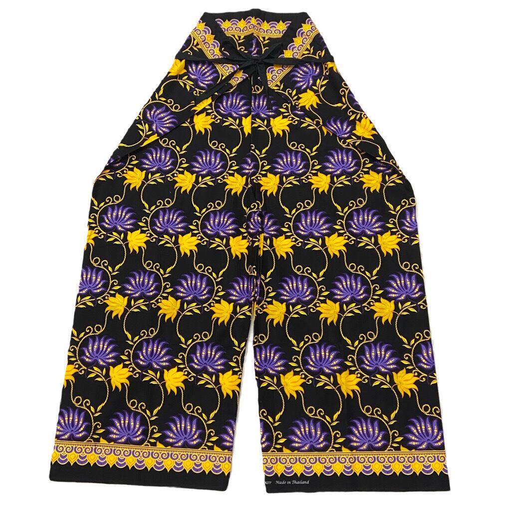 タイパンツ 植物柄(ブルー&イエロー)紐タイプ