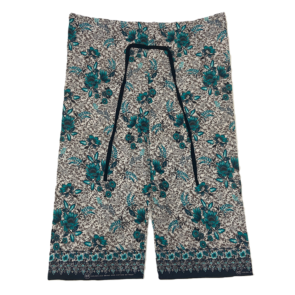 タイパンツ 白に花柄(グリーン) 紐タイプ