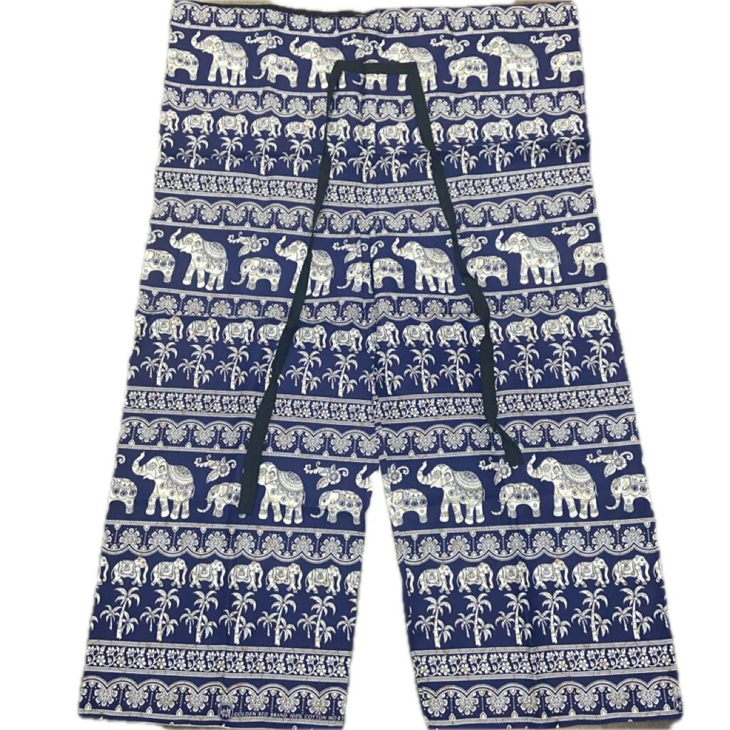 タイパンツ 象とヤシの木柄(ネイビーブルー) 紐タイプ